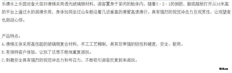水上樂園設施您當前的位置:網(wǎng)站首頁 > 產(chǎn)品展示 > 水上樂園設備 > 水上樂園設施>水上滑梯系列